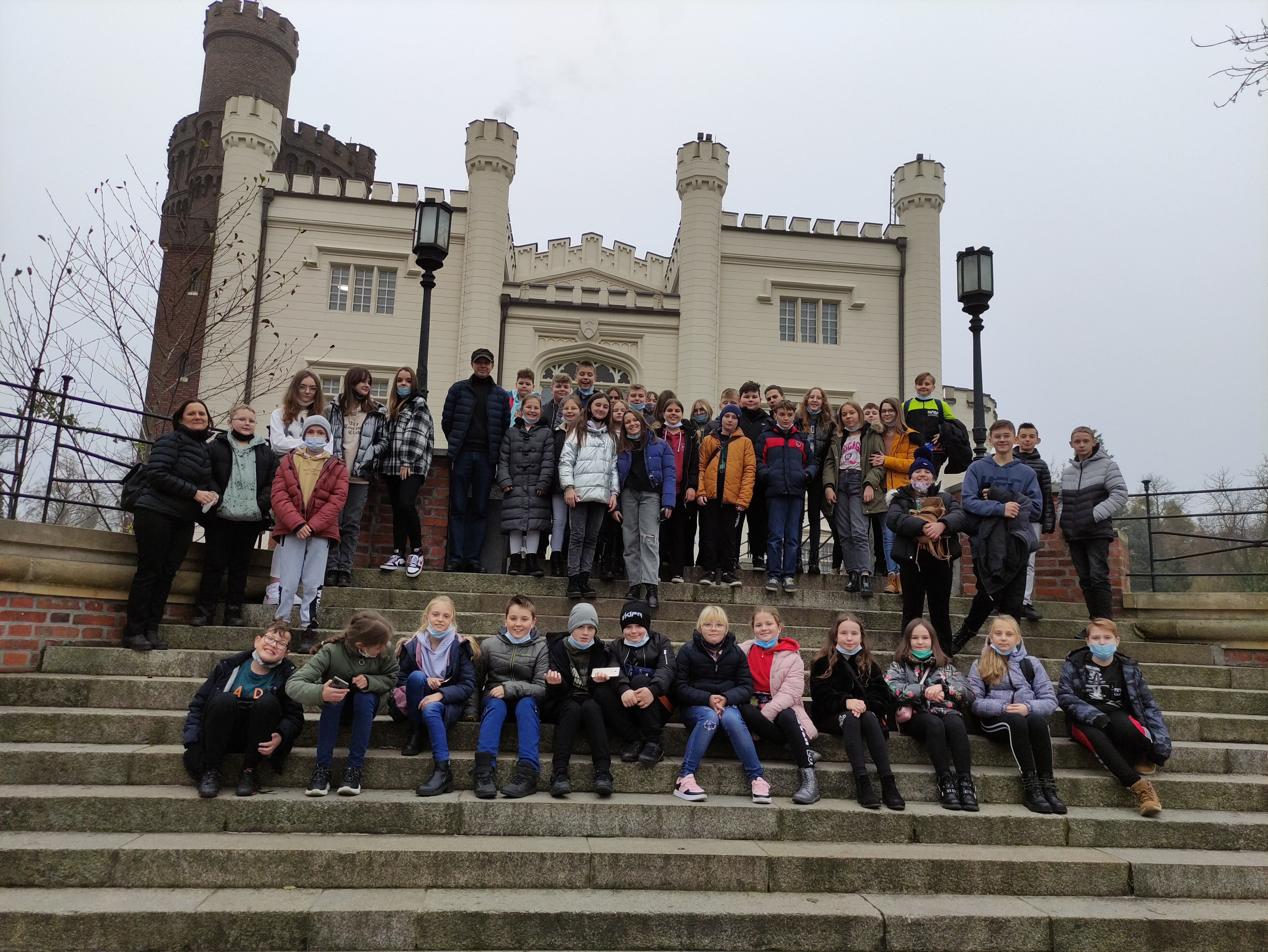 Poznań – stolica Wielkopolski, niegdyś stołeczny gród Mieszka I, później bastion ekonomiczny w walce z zaborcami, miasto, w którym dalekowzroczni Działyńscy i Raczyńscy wznosili wspaniałe gmachy użyteczności publicznej – zauroczył uczniów zabytkami Starego Rynku oraz Ostrowa Tumskiego, miejsca znamiennego dla początków polskiej historii. Duża w tym zasługa miejscowego przewodnika, który niczym Sherlock Holmes odkrywał przed młodymi detektywami kolejne tajemnice dawnego Poznania i jego mieszkańców. Wyjątkowym doświadczeniem podczas zwiedzania miasta było podziwianie w samo południe trykających się koziołków na ratuszowej wieży oraz wizyta w Farze – jednym z najpiękniejszych kościołów barokowych w Europie. Wyprawa po Wielkopolsce szlakiem magnackich rezydencji i pomników przyrody wzbogaciła wiedzę uczniów i pozostawiła niezapomniane wrażenia. Mimo późnej, jesiennej pory roku plan wycieczki został w pełni zrealizowany.